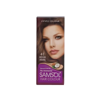 Samsol Hair Color Medium Brown Kit 41 delivers natural, soft brown tones. Long-lasting formula that nourishes as it colors. Simple and mess-free application. Order Samsol Hair Color Medium Brown Kit 41 for a soft new look!