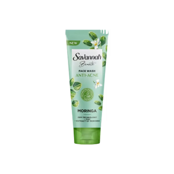 Savannah Facewash Moringa Anti Acne is a powerful acne-fighting formula enriched with the goodness of moringa. It cleanses deeply, removes impurities, and reduces acne breakouts, leaving your skin clear and refreshed. Get Savannah Facewash Moringa Anti Acne 100ml for the natural way! to clear your skin!