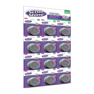 Scrub Shine Spiral includes 12 stainless steel spirals for effective cleaning of tough stains and grime. Ideal for heavy-duty cleaning tasks in kitchens and bathrooms. Shop Scrub Shine Spiral x 12 for durable and efficient cleaning!