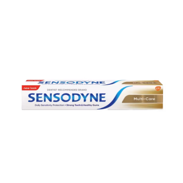 Sensodyne Toothpaste Multi Care provides all-around care for sensitive teeth, protecting against cavities, plaque, and gum problems. Its gentle formula offers long-lasting relief from sensitivity while keeping your teeth fresh. Get Sensodyne Toothpaste Multi Care 100g for complete protection and comfort!