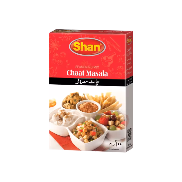 Shan Chaat Masala adds zesty flavour to chaats, fruits, and snacks. It brings that tangy punch you crave in every sprinkle. Great for entertaining and everyday meals. Shop Shan Chaat Masala Double Pack and perk up your plates!