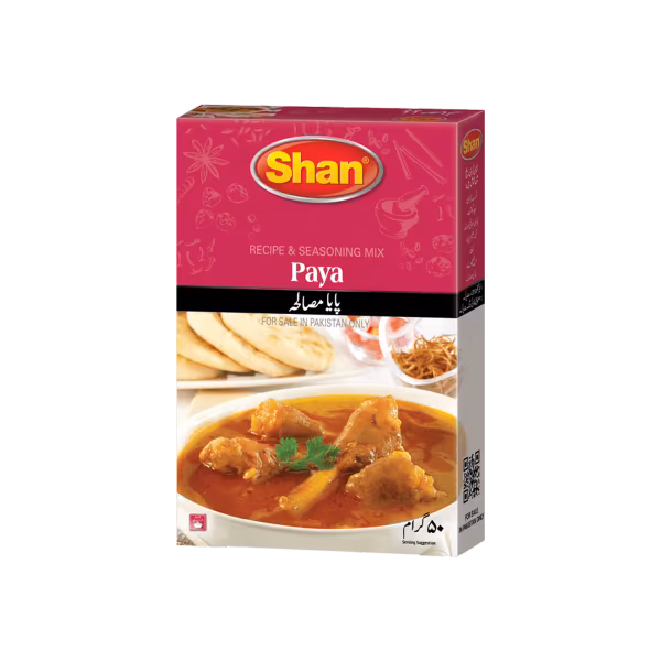 Shan Paya Masala blends aromatic spices to create the rich, gelatinous flavor of traditional paya curry. Perfect for hearty weekend breakfasts or family dinners. Elevates taste with authentic seasoning. Buy Shan Paya Masala 50g Single Pack and cook up a classic comfort meal!