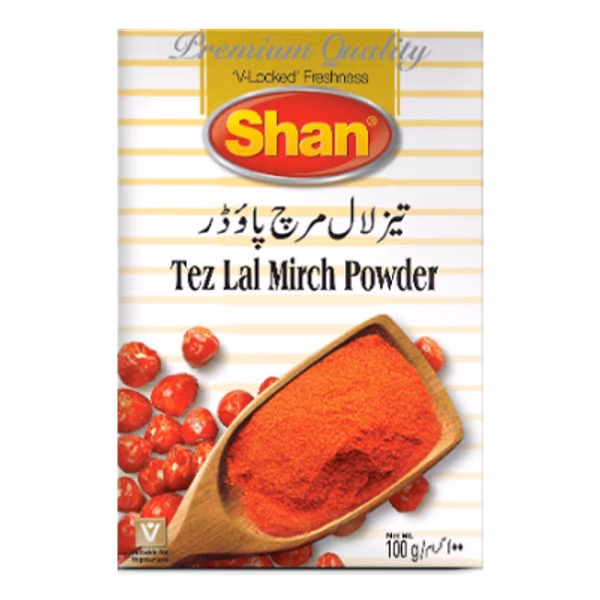 Shan Tez Lal Mirch Powder adds bold heat and rich colour to your dishes. Made from premium red chillies, it blends smoothly into your curries and marinades. Perfect for spice lovers. Order Shan Tez Lal Mirch Powder Single Pack and spice up your meals!