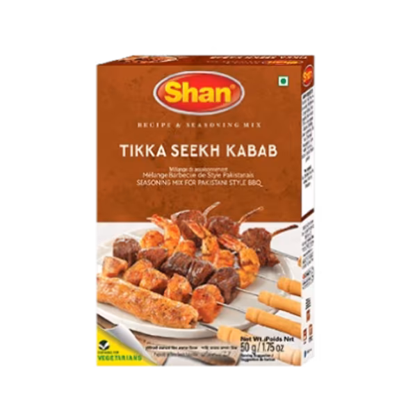 Shan Tikka Seekh Kabab Masala gives you the perfect spice blend to make juicy, flavorful seekh kebabs at home. With this 12-sachet pack, you'll have enough to create a hearty meal for your family and friends. Shop Shan Tikka Seekh Kabab Sachet x 12 for mouth-watering seekh kebabs!