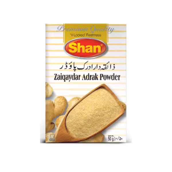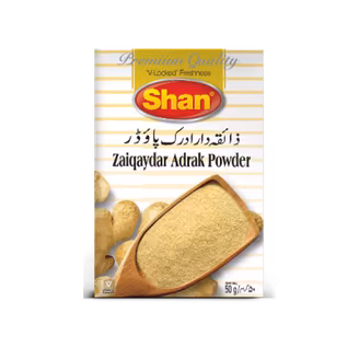 Shan Zaiqaydar Adrak Powder adds bold ginger flavour to your curries and marinades. Made from pure dried ginger for authentic spice. Buy Shan Zaiqaydar Adrak Powder 50g and enhance every recipe with warmth!