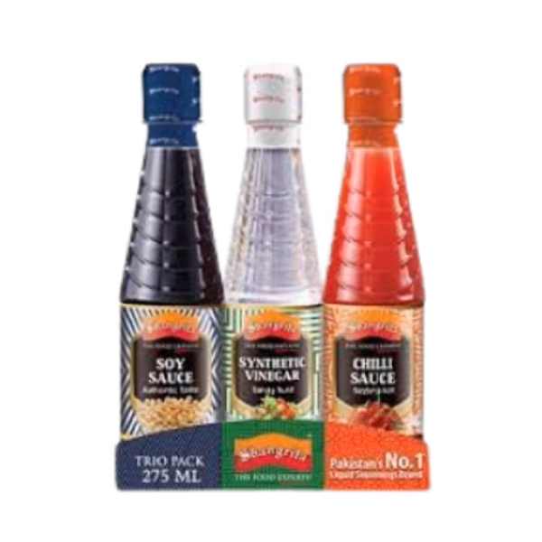 Shangrila Trio Pack includes three different sauces in a convenient pack, designed to make your cooking even more flavorful. Ideal for those who like variety in their kitchen, this pack covers all your needs from grilling to dipping. Get Shangrila Trio Pack 275ml and spice up your meals with a versatile trio of must-have sauces!