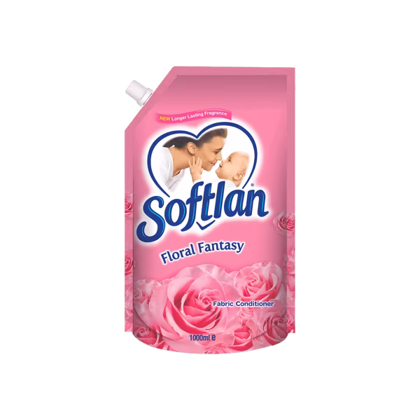 Softlan Fabric Softener Floral Fantasy leaves your clothes luxuriously soft with a delightful floral scent. It reduces static and wrinkles, making ironing easier, while preserving fabric colors and textures. Perfect for all fabrics, it offers long-lasting freshness throughout the day. Shop Softlan Fabric Softener Floral Fantasy Pouch 1L for soft, fragrant clothes with fewer wrinkles and static!