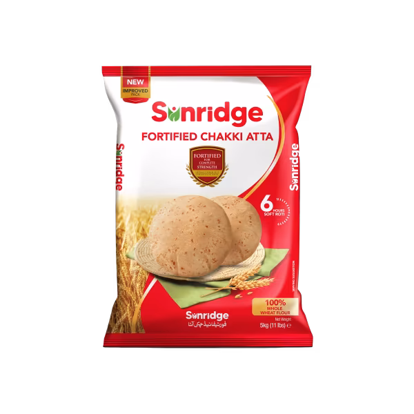 Sunridge Fortified Chakki Atta is enriched with essential nutrients to support a healthy lifestyle. Stone-ground to retain fiber and natural goodness, its the perfect choice for wholesome rotis and parathas, offering a healthier way to enjoy every meal. Shop Fortified Chakki Atta 5kg Pack for a nutritious, wholesome meal!