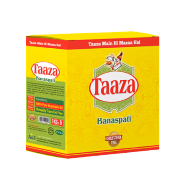 Taaza Banaspati Ghee delivers a pure and rich taste, bringing the flavors of tradition to your kitchen with every dish! Buy Taaza Banaspati Ghee 1kg Carton (Pack of 12) and embrace tradition!