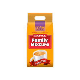 Tapal Family Mixture is a larger pack of Tapal's iconic tea blend, ensuring a perfect cup for the whole family. Shop Tapal Family Mixture 900g Pouch for an authentic tea experience!