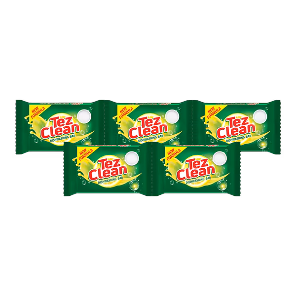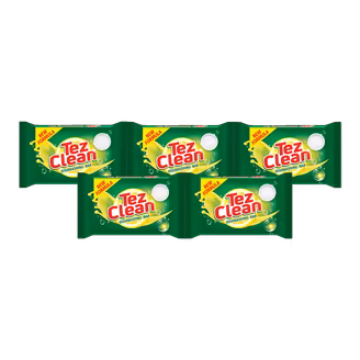 Tez Clean Dishwash Bar provides a convenient and effective way to clean dishes. Each sachet delivers a fresh, grease-cutting clean, perfect for everyday dishwashing. Get Tez Clean Dishwash Bar 45 gm Sachet x5 for quick, easy cleaning!