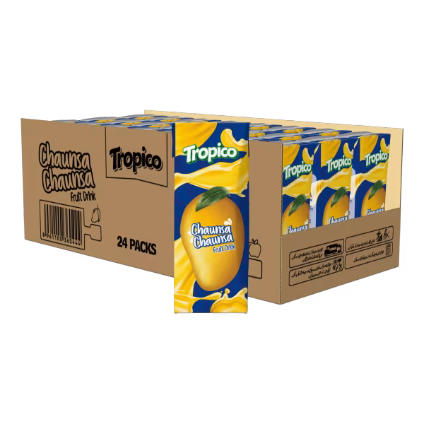 Tropico Chaunsa brings sweet mango flavor with every sip. Packed with tropical richness and no artificial flavors. Conveniently packed for daily hydration. Shop Tropico Chaunsa 200ml Carton (24 Pieces) and taste real mango joy!