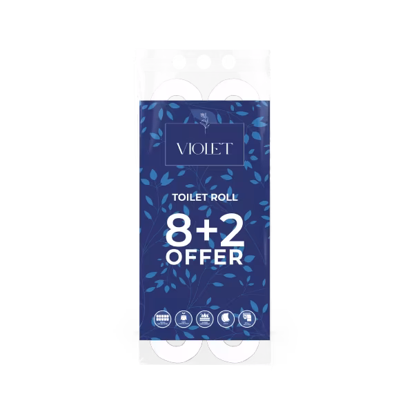 Violet Toilet Roll Pack (8+2) provides excellent value with 8 rolls and an additional 2 rolls for free. These toilet rolls are soft, strong, and ideal for everyday bathroom use. Buy Violet Toilet Roll Pack (8+2) online for a great value on high-quality toilet rolls.