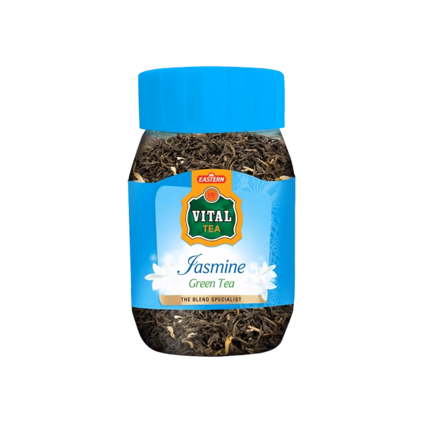 Vital Green Tea Jasmine loose leaves create a calming, fragrant cup. Ideal for slow sipping, it balances wellness benefits with delicate taste. Shop Vital Green Tea Jasmine 100g Jar and enjoy jasmine in every sip!