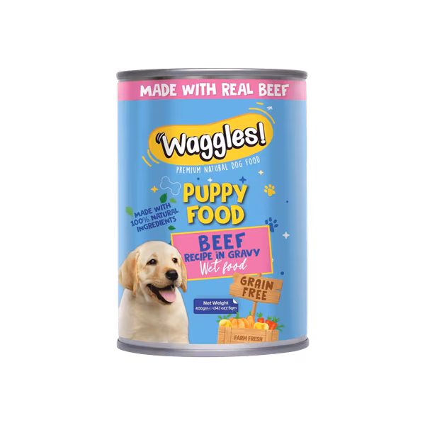 Waggles Puppy Food Beef in Gravy is specially formulated for growing puppies, featuring tender beef in a savory gravy. This meal offers essential nutrients to support healthy growth and development. Get Waggles Puppy Food Beef in Gravy 400g to provide your puppy with a delicious and nutritious start!