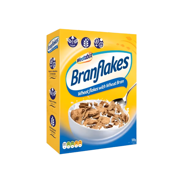 Weetabix Bran Flakes offer a crunchy, fibre-rich breakfast made from whole wheat. Supports digestive health and keeps you energised. Delicious with cold milk or yoghurt. Get Weetabix Bran Flakes 500g and start your mornings with fibre!