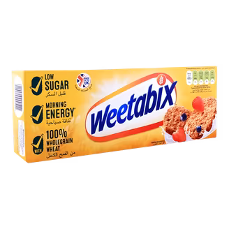 Weetabix Original is made with wholegrain wheat and packed with fibre. A healthy, low-fat breakfast option that keeps you full. Just add milk or fruit for a nutritious start. Buy Weetabix Original 215g (12 Pieces) and fuel your day right!