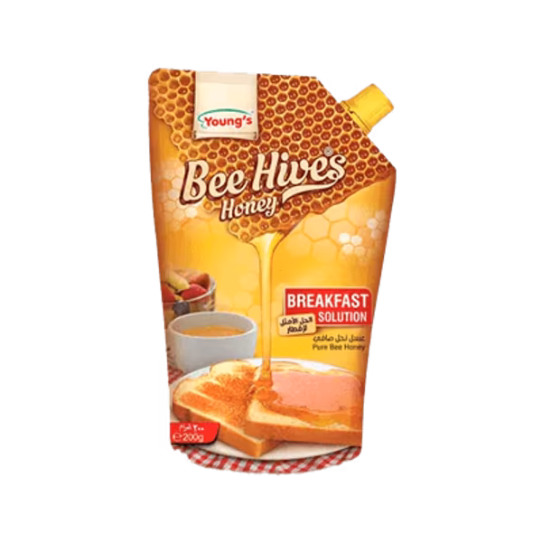 Young's Bee Hives Honey Pouch is packed with pure, natural honey and comes in a flexible pouch that's perfect for easy pouring. A wholesome choice for families. Shop Young's Bee Hives Honey 200g Pouch online and bring home health and sweetness.